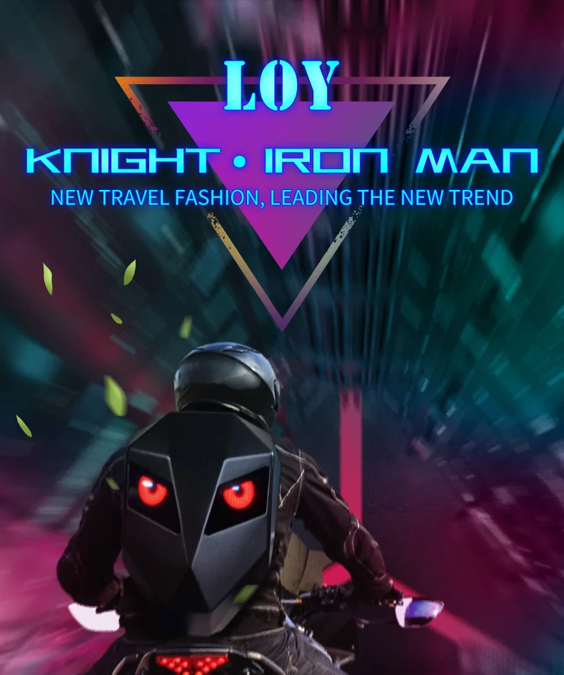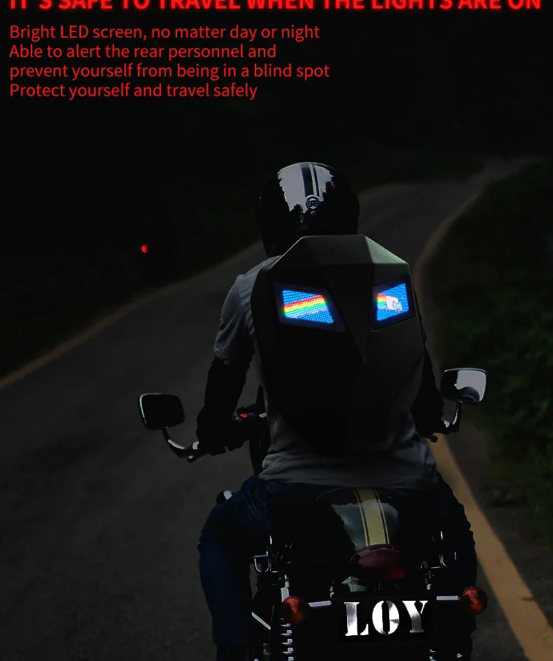 LOY LED Knight Cycling Backpack with Eye Motorcycle Helmet Bluetooth APP Control Waterproof Hard Shell Laptops Bags LED Mochila