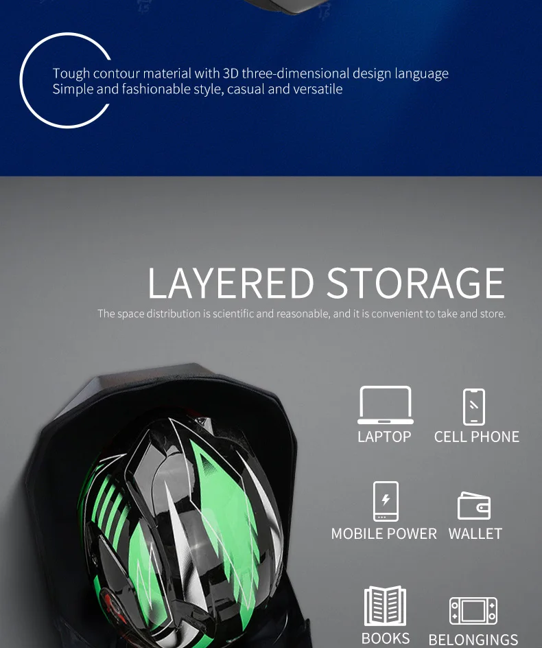【DIY 】Modify the pattern at will, let the laptop backpack as you wish. It has a sleek and cool design that's easy to spot in a crowd. The Crelander LED cool knight smart backpack is suitable for a variety of scenes,like traveling,hiking,riding,go to school....