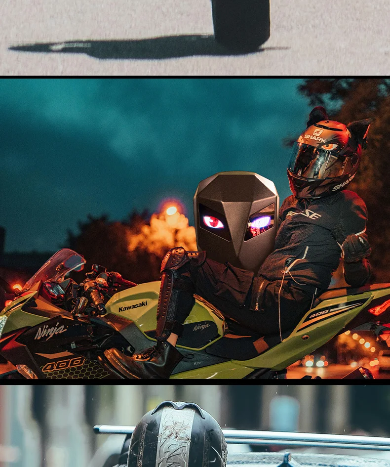 LED Knight Backpack with Eye Motorcycle Helmet Bluetooth APP Control Waterproof Hard Shell Laptops Bags LED Mochila